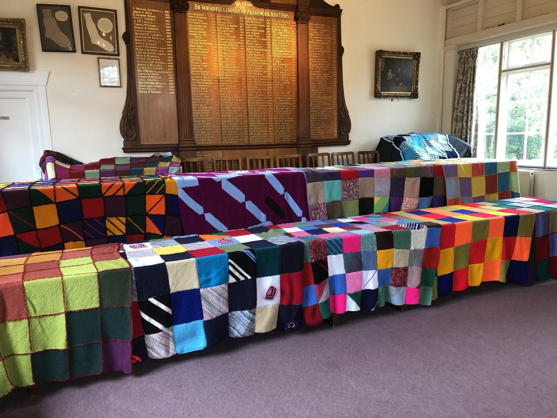 of Remembrance charities, members of over 30 Livery companies, and WI members, plus friends stretching from Yorkshire to Hertfordshire. Each blanket is unique and the charities we are knitting for are Action Homeless in Leicester, Hope Nottingham and Glass Door London. The knitting has provided a positive focus during lock-down and we look forward to being able to present the blankets. A special mention to Carol, May and Marjorie who are residents in our Cottage Homes in Oadby - they have knitted over 500 squares and they're well on the way to having knitted enough squares for five blankets. More knitters are welcome - please email me liz@lizgreen.co.uk.