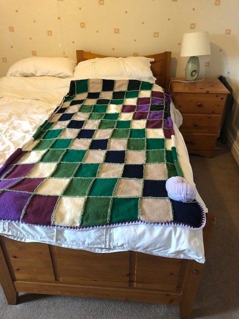 of Remembrance charities, members of over 30 Livery companies, and WI members, plus friends stretching from Yorkshire to Hertfordshire. Each blanket is unique and the charities we are knitting for are Action Homeless in Leicester, Hope Nottingham and Glass Door London. The knitting has provided a positive focus during lock-down and we look forward to being able to present the blankets. A special mention to Carol, May and Marjorie who are residents in our Cottage Homes in Oadby - they have knitted over 500 squares and they're well on the way to having knitted enough squares for five blankets. More knitters are welcome - please email me liz@lizgreen.co.uk.