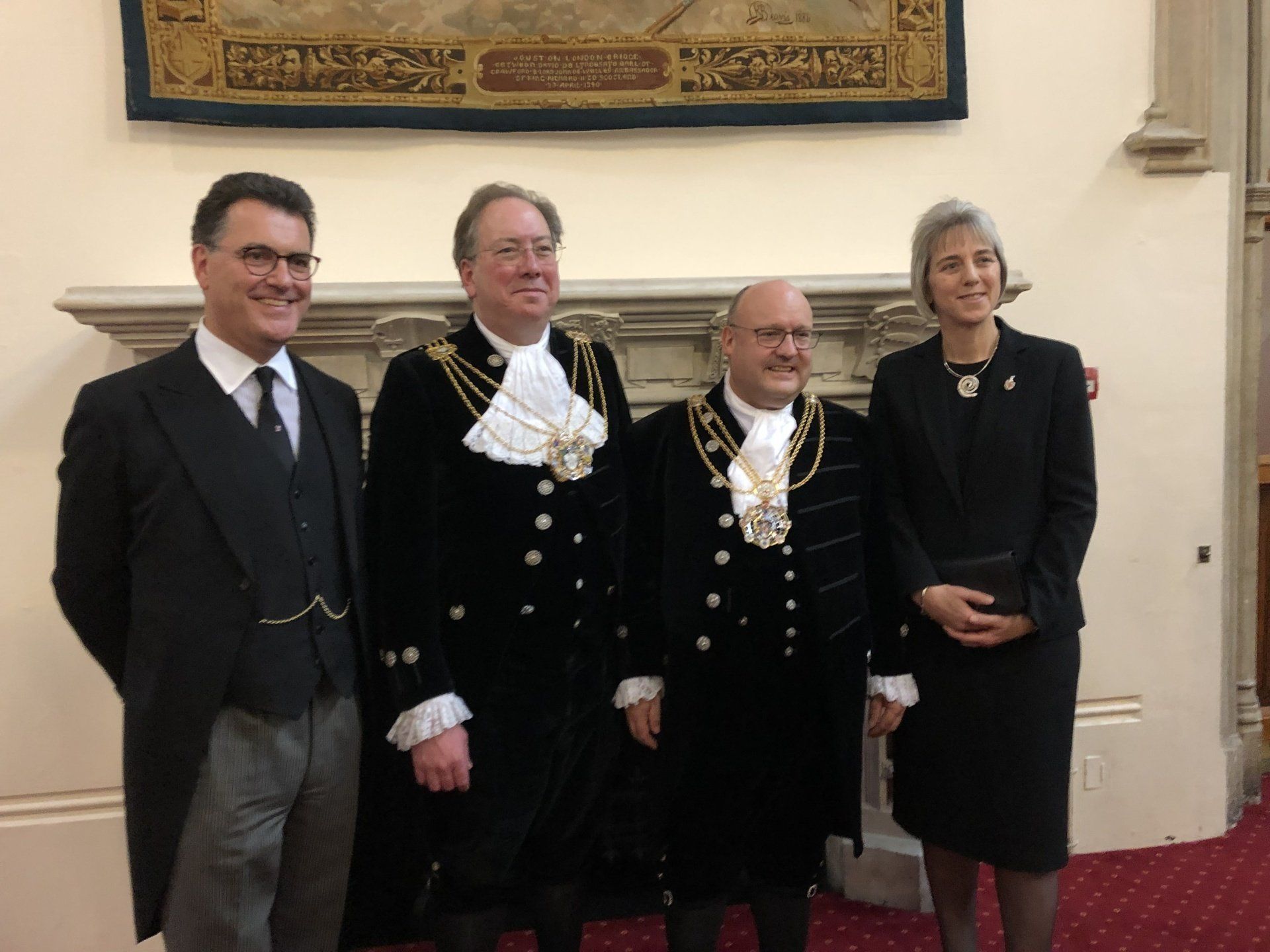 25 &26 Sept - as we neared the end of our term of office life was still as hectic as ever. After hosting lunch for the Judges we held drinks in the Old Bailey for everyone who works there, and in Mansion House. It was great to chat to many we don't normally see but who are an essential part of the running of both locations. On Thursday it was fascinating to hear the Chinese Ambassador speak of the contribution China makes to the UN, the sheer scale and growth of China and future relations with the UK, as well as the number of students and visitors to both the UK and China. I joined Vincent for our final lunch with the Judges which was very sad as they have helped us with our lunch guests and also facilitated events that we have held in the Bailey. Seeing the Judges almost daily makes it very difficult to say goodbye - as an Alderman Vincent will be back representing the Lord Mayor but I am not supposed to return too quickly. In the evening it was a pleasure for the full Civic Team to join the WC Basketmakers to celebrate their 450th Anniversary at Mansion House. The prize winning creations were on display (as modelled by the Lady Mayoress) - it is so important to keep traditional crafts going and the Basketmakers have a special category of membership for those who work in basketmaking. A first (for me at least) was seeing West End Kids dance to songs from The Greatest Showman in-between the table sprigs and at the end of the Hall - amazingly talented students and really upped the tempo and had us all wanting to take part!